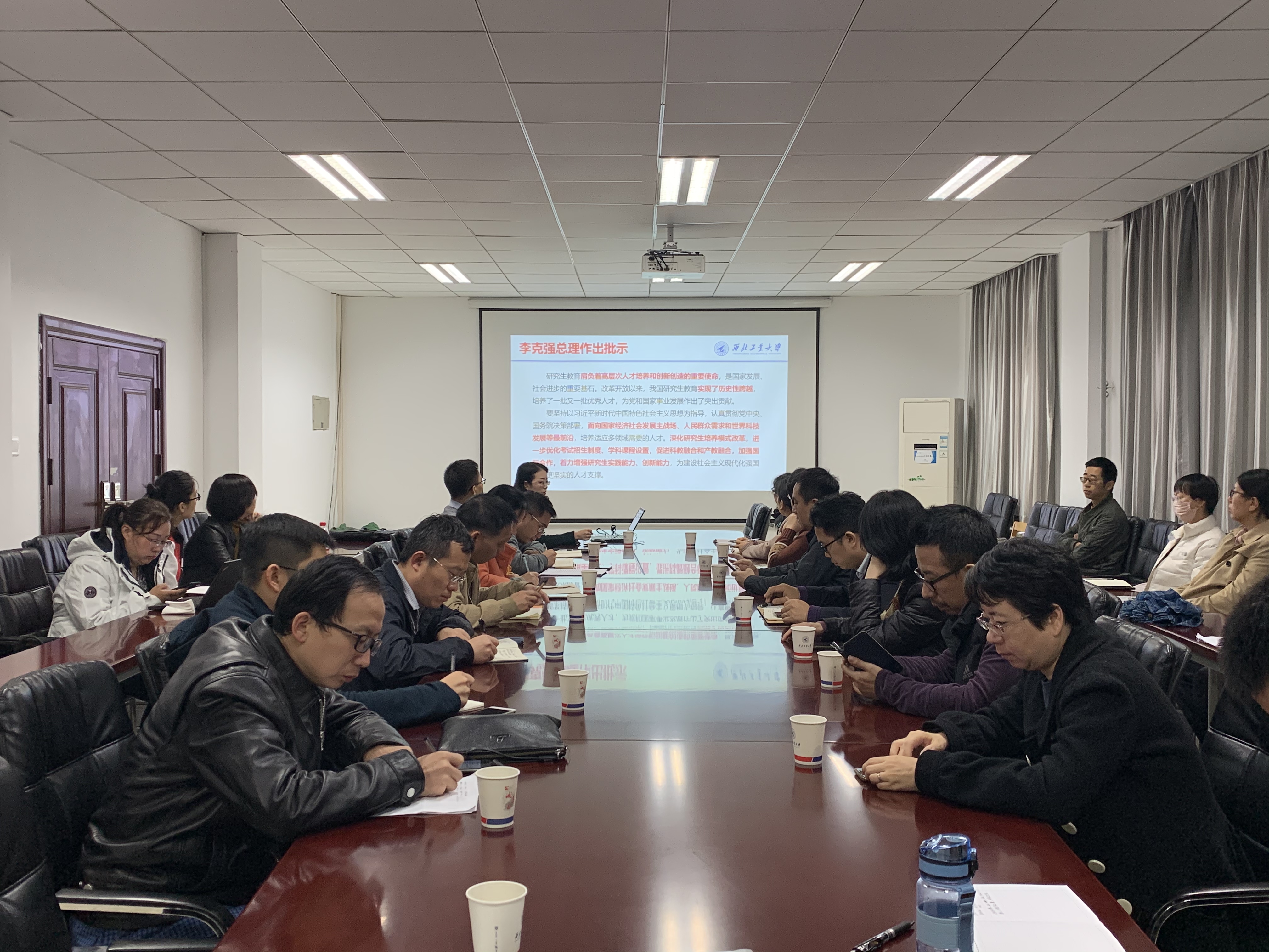 杨慧同志带领全体与会人员学习了习近平总书记关于研究生教育工作的重要指示精神、李克强总理的批示精神、孙春兰副总理在全国研究生教育会议上的讲话和《加快新时代研究生教育改革发展的意见》。对欧博ABG中文官网入口进一步学习贯彻落实全国研究生教育会议精神的工作做出了具体部署,后续学院要组织党政班子、学术委员会委员、研究生导师、管理队伍等代表深入学习会议精神,开展座谈会、研讨会等多种形式的学习和研讨活动。