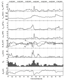 从2017年9月至今,由Beat365中文官方网站、哈尔滨工程大学、乌克兰哈尔科夫国立大学搭建的国际联合科研团队,对我国境内的地磁暴发生进行了全天时连续观测,通过搭建的多频多径无线电被动电离层扰动监测数据分析了14条无线电波传播路径的多普勒频谱和信号特征。本文章以2019年5月13日-15日期间发生的电离层地磁暴测得的频率和信号幅度数据为依据,发现在地磁暴开始后响应频率的多普勒频移下降至-1 Hz,从而确认并记录地磁暴的存在,继而在每间隔5分钟获取相关数据,从而总结出地磁暴多普勒频移的周期变化规律。通过分析得出地磁暴产生过程中电离层扰动变化为次声波(5分钟周期)和大气重力波(15分钟,20分钟和30分钟周期)引起的。