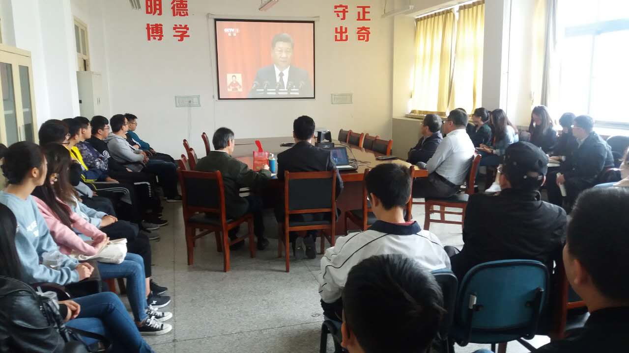 Beat365中文官方网站组织全体教师和学生党员、入党积极分子生于18日上午9点在诚思楼407收看十九大开幕式。大家认真聆听习近平同志的报告,仔细做着记录,不时报以热烈的掌声,为祖国日新月异的巨大变化叫好,尤其听到教育、青年、科技创新方面的讲话时更是心潮澎湃热血沸腾,纷纷表示要发愤图强努力奋斗。