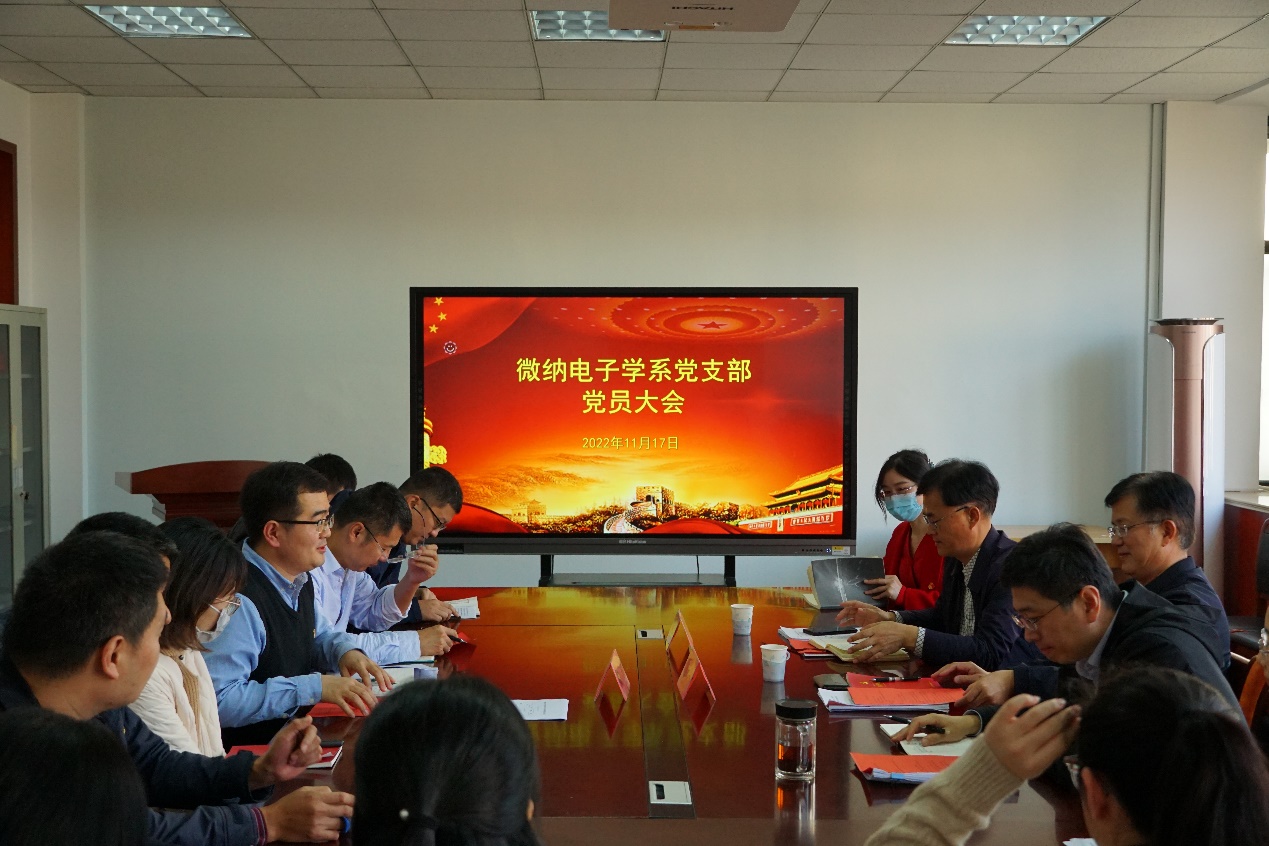 1117日下午,Beat365中文官方网站微纳电子学系教工党支部召开党员发展大会,校党委常委、组织部部长徐龙飞,组织部副部长、党校常务副校长吴鹏莅临指导,Beat365中文官方网站党委书记张启春、副院长宿杰及微纳电子学系教工党员参加,会议由党支部书记姚钊主持。