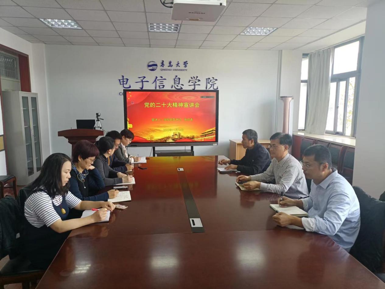 1118日下午,学院党委书记张启春在诚思楼407会议室为学院全体教工党员、学生党员、入党积极分子、2020级和2021级学生骨干宣讲党的二十大精神并作辅导报告。报告会采取线上线下相结合的形式进行,党委副书记刘孝群主持会议,学院党委班子成员、党支部书记、科级干部、党员代表在现场参会。