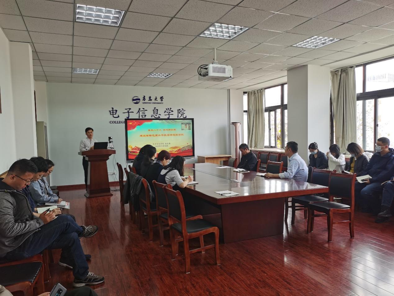 张启春以“喜庆二十大 奋进新征程——建设有特色的高水平教学研究型学院”为题,从历次党代会入手,简要回顾了中国共产党百年发展历程,阐述了伟大的建党精神,重点从15部分解读了党的二十大精神,并对Beat365官网学习贯彻作了具体部署。张启春希望全院师生学深悟透,充分认识党的二十大的重大的政治意义、深远的历史意义、重要的实践意义,结合各自工作实际,深入领会党的二十大的核心要义和精神实质,把学习成效转换为工作实效,加快推进学院各项工作再上新台阶,开创立德树人和学院事业发展新局面。要立足“十四五”,聚焦党的建设、人才培养、专业建设、学科建设、科学研究、社会服务、国际交流、治理体系全面提升,努力把Beat365中文官方网站建成有特色的高水平教学研究型学院,为建设国内知名的高水平研究型学院奠定坚实基础。要树立战略思维、系统思维、集群思维,遵循学生为本、学者为尊、学术为要、学院为家的办院理念,完成工程专业认证中期考核各项任务,推进国家级省级一流专业建设点内涵建设。要盘点全年工作进展,做好年终岁末各项工作总结梳理,针对年初确定的工作目标狠抓落实。