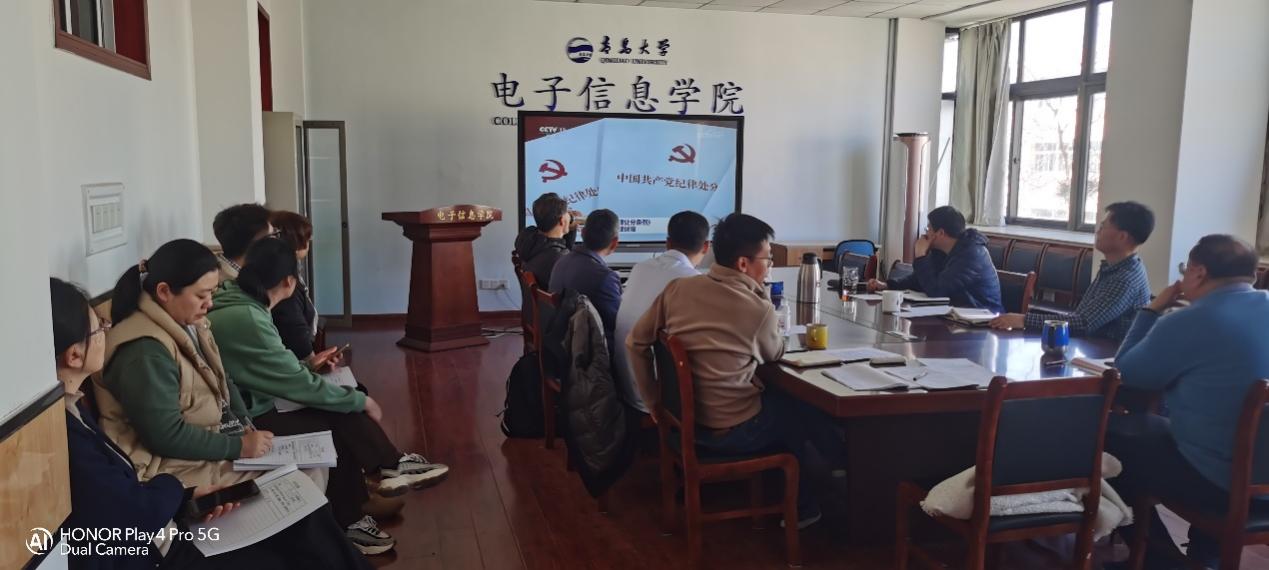 刘孝群副书记带领大家集体学习了新修订的《中国共产党纪律处分条例》。会议要求,把学习贯彻新修订《中国共产党纪律处分条例》作为重要政治任务,全面准确把握《中国共产党纪律处分条例》的总体要求和重要内容,把纪律意识、规矩意识挺在前面,不断与时俱进、持之以恒、融会贯通,使铁的纪律真正转化为自身实际工作的日常习惯和自觉遵循,持续推进学院风清气正的政治氛围,为学院高质量发展提供坚强纪律保障。