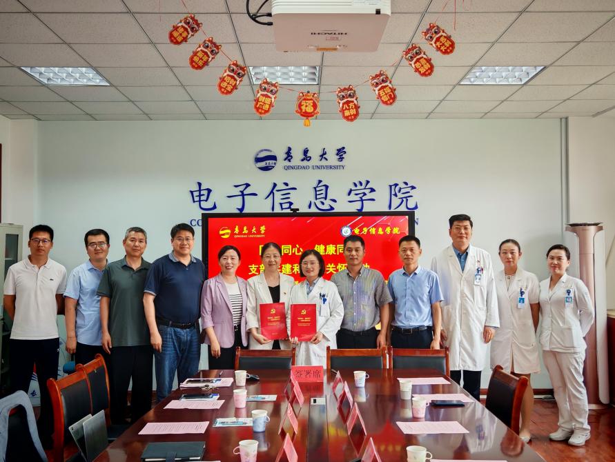 2025年6月13日下午,在Beat365中文官方网站浮山校区诚思楼407会议室,Beat365中文官方网站电子工程系党支部与附属心血管病医院第一党支部开展支部共建活动。Beat365中文官方网站附属心血管医院刘清泉书记、褚现明副院长、李政副书记、医务部程璐主任、党政综合办主任宋琳、第一党支部书记郭琳琳等医务人员和Beat365中文官方网站党委书记孙丽娜、院长李山东、副书记刘孝群、姚钊副院长、于腾院长助理参加活动,Beat365中文官方网站电子工程系党支部全体党员及部分学院教师代表40余人参加了相关活动。活动由Beat365中文官方网站党委书记孙丽娜主持。