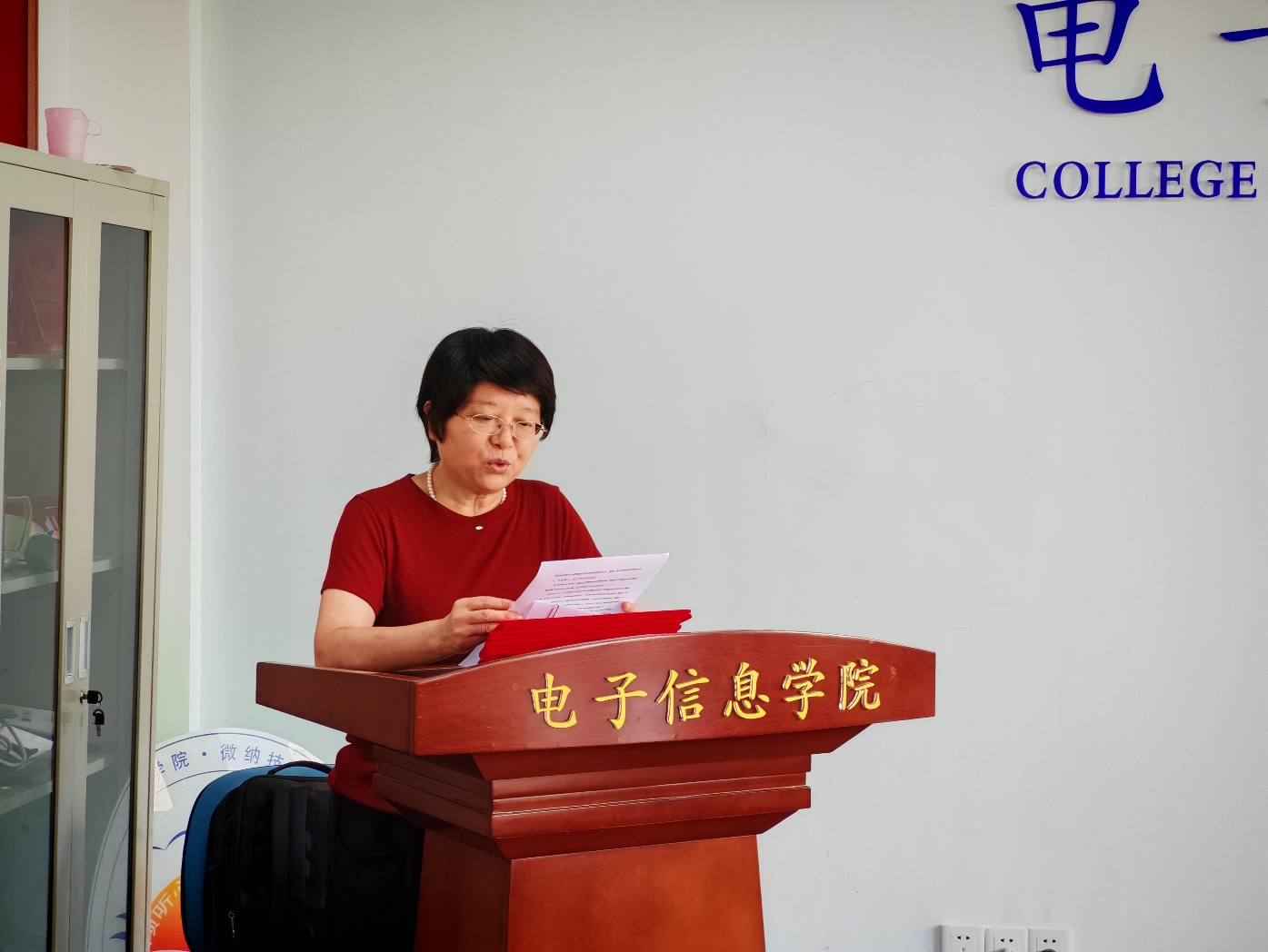 党委书记孙丽娜做发言总结,她向受表彰者表示热烈祝贺,对过去一年全院教职工的辛勤工作表示感谢,同时特别向学院里一批积极奉献的教职工致以崇高敬意。过去一年,学院发展的每一步都离不开这些教职工的默默付出:他们主动扛起责任,不计个人得失,常常牺牲休息时间投入工作,无论是推进日常事务、攻克工作难题,还是助力团队发展,都始终以饱满的热情坚守岗位,用实际行动诠释着对教育事业的热爱与担当。正是这样一批勇挑重担、甘于奉献的教职工,为学院的高质量发展筑牢了坚实基础。她勉励全体教职工以受表彰先进个人和这些奉献者为榜样,坚守教育初心、牢记育人使命,不断提升工作水平,为培养更多电子信息领域优秀人才不懈奋斗。
