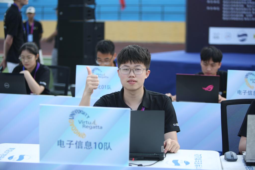 在得知云上帆船的比赛时,张文强,王文亭、洪晨、郭涵报名参加,组成电子信息1队。王珺熠、孙永谦、刘朝官、宁子奕报名参加,组成电子信息10队。在领队孙沛毅的指导下,两队成员都了解了帆船的运动原理以及游戏的规则。为了提升游戏的技巧,两小组成员每晚自习后都会回到宿舍线上进行模拟帆船训练,一练习就一小时。经过两周多的训练,在所有队员的鼓励与支持下,电子信息01队与10队杀出重围,成功晋级半决赛,他们没有松懈,仍然坚持每晚的训练,终于晋级决赛。