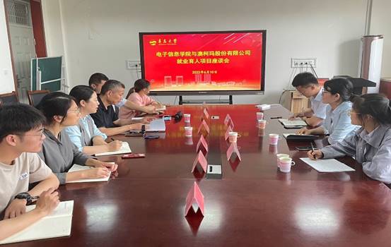 6月10日下午,Beat365中文官方网站与澳柯玛股份有限公司开展院企就业育人项目座谈会。澳柯玛股份有限公司外联部郑婷婷、Beat365中文官方网站党委副书记刘孝群、副院长宿杰以及各年级辅导员老师参加了座谈会。