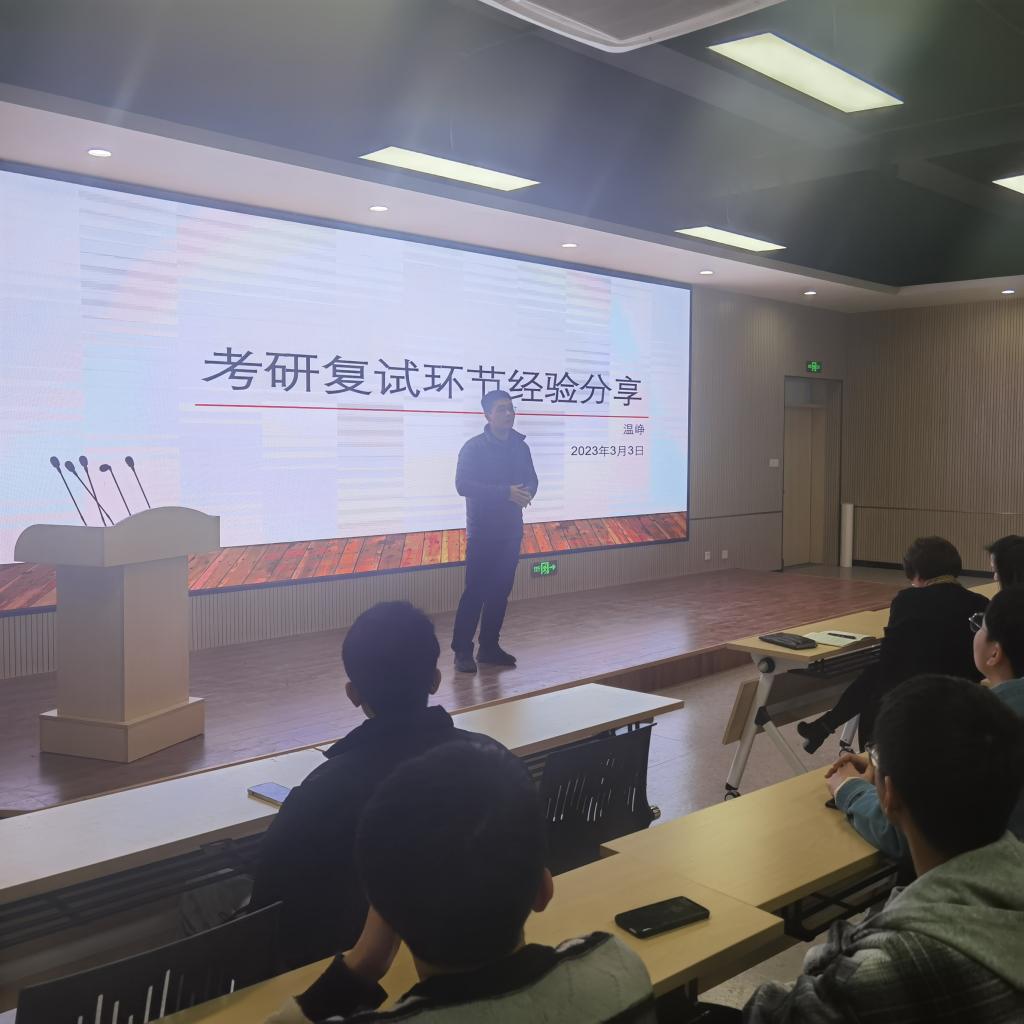 3月3日,Beat365官网在泓园科创文化中心二楼多功能厅举办了2023届毕业生考研复试、调剂经验分享交流会,学院各系主任和支部书记以及近200名考研毕业生出席分享会。分享会由温峥教授主讲,院党委副书记刘孝群主持分享会。