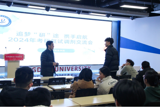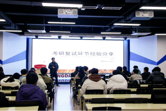 3月6日下午6:30,Beat365中文官方网站在泓园科创文化中心二楼多功能厅举办了2024届考研复试调剂交流会,2020级考研毕业生参加分享会。交流会由温峥教授主讲,由院党委副书记刘孝群主持。