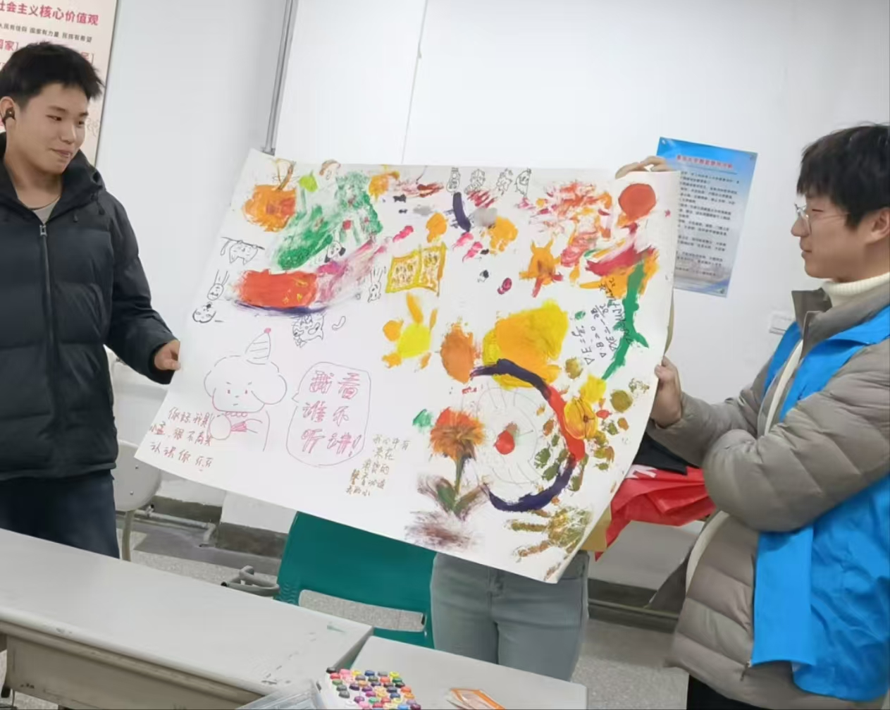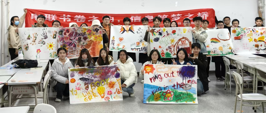 接下来,读书会成员们准备了一个充满创意与心意的活动环节——“书香绘梦海报创作”。大家以小组为单位,戴上一次性手套,在画布上留下对书籍和读书活动的热爱,并与其他小组分享作品。成员们纷纷表达了对读书会的深厚情感,感谢在此收获的友谊、知识以及个人成长。他们希望读书会能够继续成为大家交流思想、分享心得的平台,也希望未来能有更多机会通过阅读来丰富自己的内心世界。
