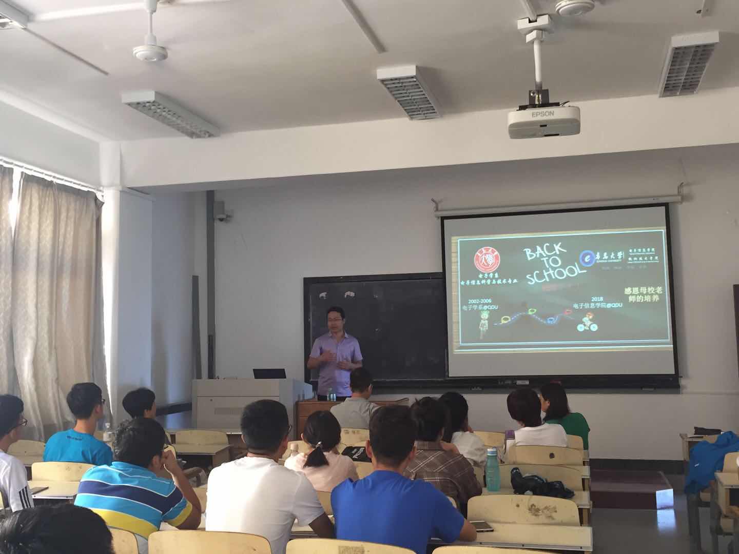 当天正值教师节,唐教授以“雁归浮山,与光同行”作为开篇,感谢各位老师曾经的谆谆教导,鼓励学生尊敬师长,认真规划大学生活。报告中他回顾了光纤通信的发展历史,讲述光纤通信技术发展中的问题和当前研究的热点技术,包括时分复用,频分复用,多模多芯技术等。光纤通信网络是支撑当今社会发展的“信息高速公路”,物联网、大数据、云计算、人工智能等新型信息技术的发展都依赖于光纤通信系统提供的高速信息通路。