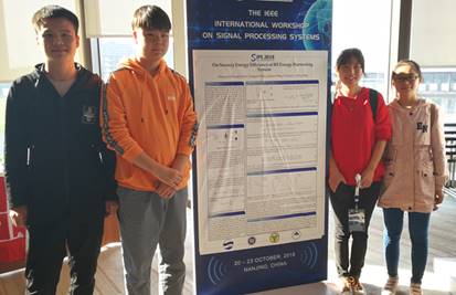 近日,电子信息(微纳技术)学院通信工程系宋康老师课题组指导2016级通信工程系本科生纪正霞、孟令权、聂孟允、王庆燃等多位同学在无线通信领域取得研究进展,相关成果发表在《Wireless Networks》(SCI收录,IF = 2.405),以及国际学术会议IEEE International Workshop on Signal Processing Systems(SiPS)上。本科生纪正霞为论文的第一作者,Beat365中文官方网站为论文第一作者单位及第一通信单位。研究过程中得到了Beat365中文官方网站“大学生创新创业训练计划”项目的资助和学院的大力支持,也得到了东南大学和河南科技大学多位知名学者的指导和帮助,相关成果已提交发明专利申请。四名本科生受邀赴江苏南京参加SiPS会议并对论文内容进行了宣讲。