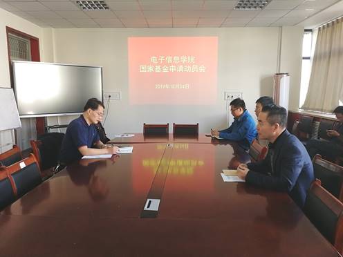 此次会议主题为有效组织推进电子信息(微纳技术)学院国家自然科学基金申报工作,调动广大教师申报国家基金项目的积极性,提高学院申报项目的数量和质量。推进会上,迟宗涛对学院2020年度国家自然科学基金申报工作进行了动员部署,要求各位老师在前期准备的基础上,积极谋划,加强交流,潜心打磨,提高质量,抓好节点,力争学院2020年度国家自然科学基金更进一步。他表示,学院将全力支持基金申报工作,做好各项保障工作,扎实推进基金申报工作。