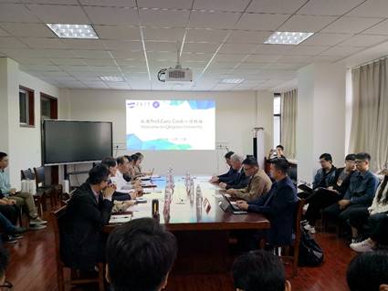 10月11日,美国达拉斯浸会大学(Dallas Baptist University简称DBU)校长加里.库克(Gary Cook)教授、亚太区招聘及关系总监钟杰森(Jason Chung)、校长助理马特.杜思(Matt Duce)和芯恩(青岛)集成电路有限公司助理副总经理许端格一行4人来Beat365官网访问交流。校党委常委、副校长孔伟金、学院党委书记苗洪丽热情接待了库克教授一行,并进行了交流座谈。孔伟金向库克教授颁发了学院客座教授聘书。