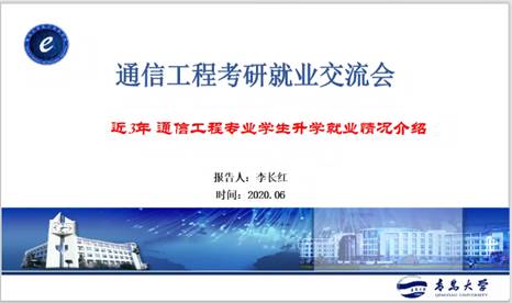 会议开始,通信工程系主任李长红简要介绍了通信工程专业的升学和就业情况;随后,第一批五位主讲人根据自己的升学和就业经验,向同学们分享经验、交流心得体会。