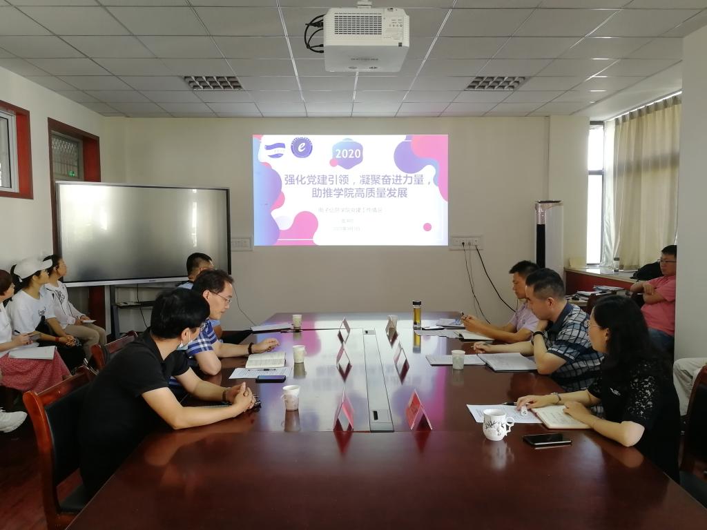 党委书记苗洪丽首先对新引进的徐婷、刘田两位博士加入电子信息(微纳技术)学院大家庭表示热烈欢迎,两位博士分别结合学习经历、研究方向进行自我介绍。随后,苗洪丽传达学校暑期研讨班的会议精神,重点领学了党委书记胡金焱《不忘初心、方得始终——回归大学的基本职能》主旨报告,传达了校长夏东伟总结讲话精神和学校下半年重点工作。会上,苗洪丽书记以“强化党建引领,凝聚奋进力量,助推学院高质量发展”为题,对学院基本情况、2020年上半年学院发展的主要成果、学院发展面临的主要问题、下半年党建工作的重点等方面进行了全面梳理总结。她指出,2020年是非同寻常的一年,全院师生经受住了疫情的考验,完成了一系列卓有成效的工作。2020年也是“十三五”收官之年,高质量谋划“十四五”的关键一年。这一年,在校党委的正确领导下,Beat365中文官方网站党委严格落实党要管党、全面从严治党要求,牢固树立学院办大学理念,始终遵循担当作为、狠抓落实、对标争先、争创一流的党建工作思路,将党建工作与中心工作融为一体、同频共振,有力推动了学院各项事业高质量发展。同时,她着重从党建方面,对学院下半年重点工作提出落实管党治党政治责任、加强学院领导班子建设、推进党建工作与中心工作“四个结合”、强化理论武装、压实意识形态工作责任、做好师生思想政治工作、加强基层党组织建设、探索VR党建工作新模式、健全完善学院治理体系、推进规划组织实施等十个方面作了具体部署。