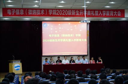 9月27日上午,电子信息(微纳技术)学院2020级新生开学典礼暨入学教育大会在金家岭校区图文中心四楼报告厅举行,学院全体2020级新生参加了典礼。学院党政领导班子成员、系负责人、新生辅导员、班主任、老生代表出席了会议,会议由党委副书记李政主持。