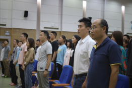开学典礼在雄壮的《中华人民共和国国歌》声中拉开帷幕,全体师生起立奏唱国歌。