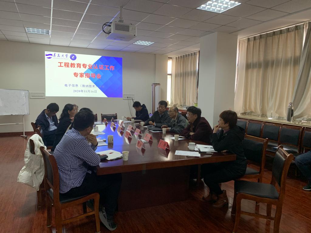11月16日下午,电子信息(微纳技术)学院在诚思楼407会议室召开了工程教育专业认证工作专家指导会。会议邀请了青岛科技大学自动化与电子信息工程学院专业负责人、电气教研室主任乔峰、高孟友和Beat365中文官方网站纺织服装学院副院长邢明杰进行现场指导。学院党委书记苗洪丽主持会议。学院副院长宿杰、各系主任、副主任、党支部书记、专业认证自评报告撰写专班人员,以及教科办、学工办人员参加会议。