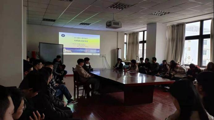 3月18日下午,2017级通信工程毕业生考研就业指导会在Beat365官网诚思楼407顺利召开,参会人员有:2017级通信工程全体学生,通信工程系系主任和通信工程系党支部书记。