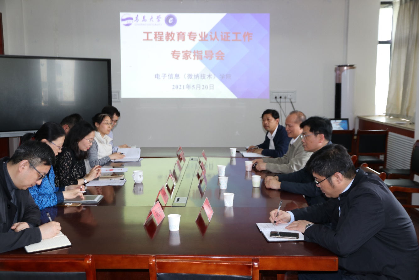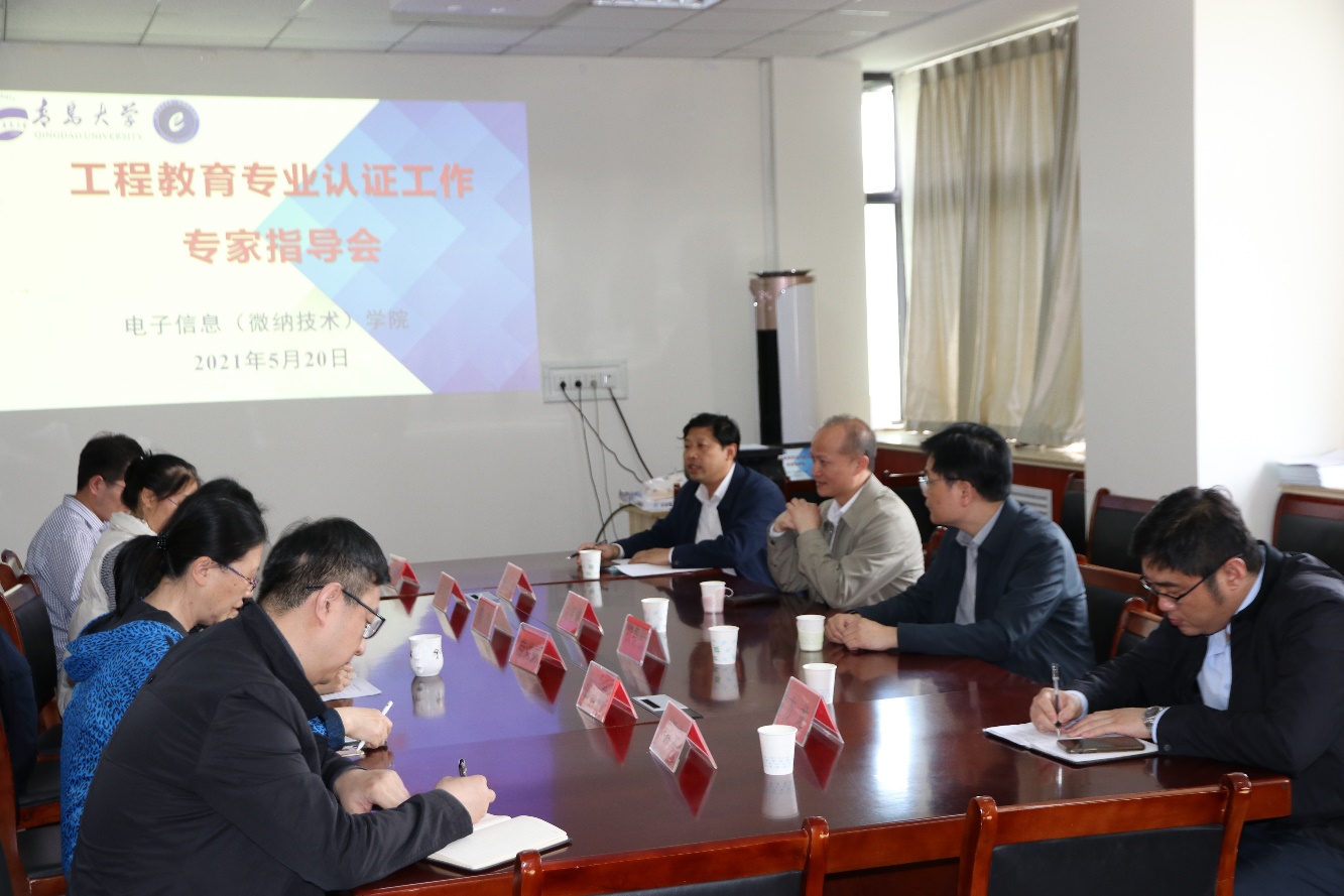 为更好地推进学院工程教育专业认证工作,加强一流课程建设和2021版人才培养方案修订论证,5月20日下午,电子信息(微纳技术)学院在诚思楼407会议室召开工程教育专业认证专家指导会,南京邮电大学实验室建设与管理处处长刘芫健教授,南京林业大学实验室与基地建设管理处处长、国家级一流课程评审专家农春仕教授受邀前来指导工作。会议由学院党委书记苗洪丽主持,教务处教学质量与评价办公室主任张永进、化学化工学院系主任、专业负责人方龙受邀参会,学院副院长宿杰、各专业负责人及教师代表参会。