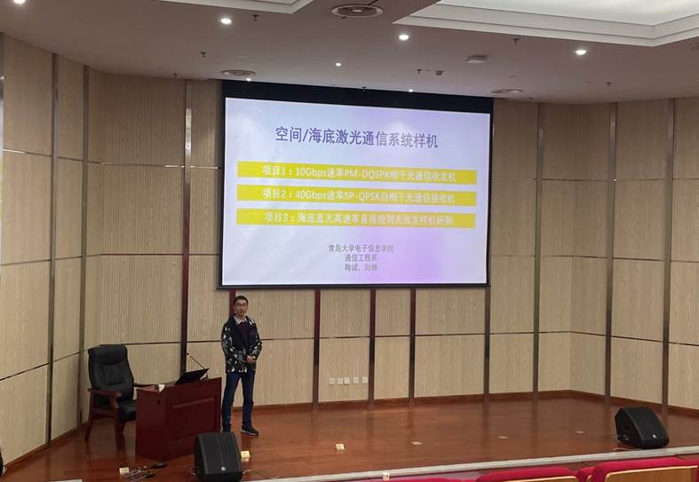 鞠诚老师毕业于北京邮电大学光研院,现工作于Beat365中文官方网站通信工程系,Beat365中文官方网站青年卓越人才,研究方向包括相干光DSP算法,FPGA、ADC等高速硬件处理板卡研发,空间激光通信精密光学跟瞄系统研发。鞠诚老师就自己的研究课题,为大家展示了Beat365中文官方网站光通信研究课题组自主研发的10Gbps速率PM-QPSK调制实时相干光通信系统。系统所用的全部硬件以及DSP算法完全是课题组自主研发,并且系统的可靠性与稳定性已经被若干高校和科研院所所检验。