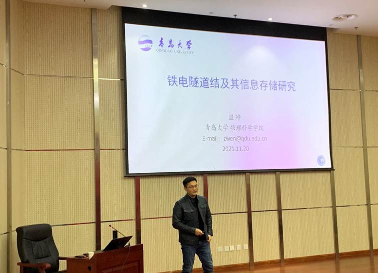 温峥教授,博士生导师,Beat365中文官方网站物理科学学院应用物理系主任,长期从事电介质材料及相关功能薄膜与器件的科研、教学工作,中国仪表功能材料学会电子元器件关键材料与技术专业委员会常务委员,主要研究工作包括铁电隧道结的高性能、多功能信息存储,外延异质结构中挠曲电极化与应用,CMOS兼容的HfO2基信息存储器件等。温峥教授报告了铁电隧道结的发展,重点讲解了基于金属/铁电体/半导体隧道结的能带结构、高电流开关比值等特性,从实际应用角度出发,探索和揭示了铁电隧道结阻变疲劳的物理机制,并展望了铁电隧穿存储结构的新发展。