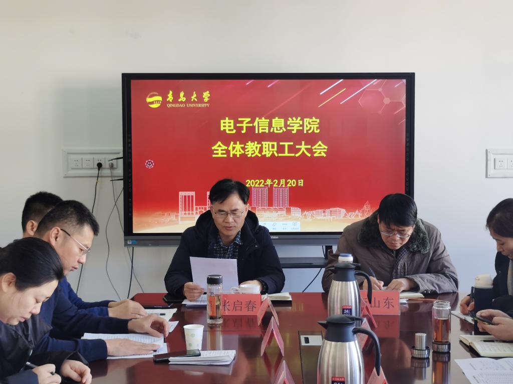 2月20日上午,学院在诚思楼407会议室召开全院教职工大会,全体教职工参加会议。会议由学院党委书记张启春主持。