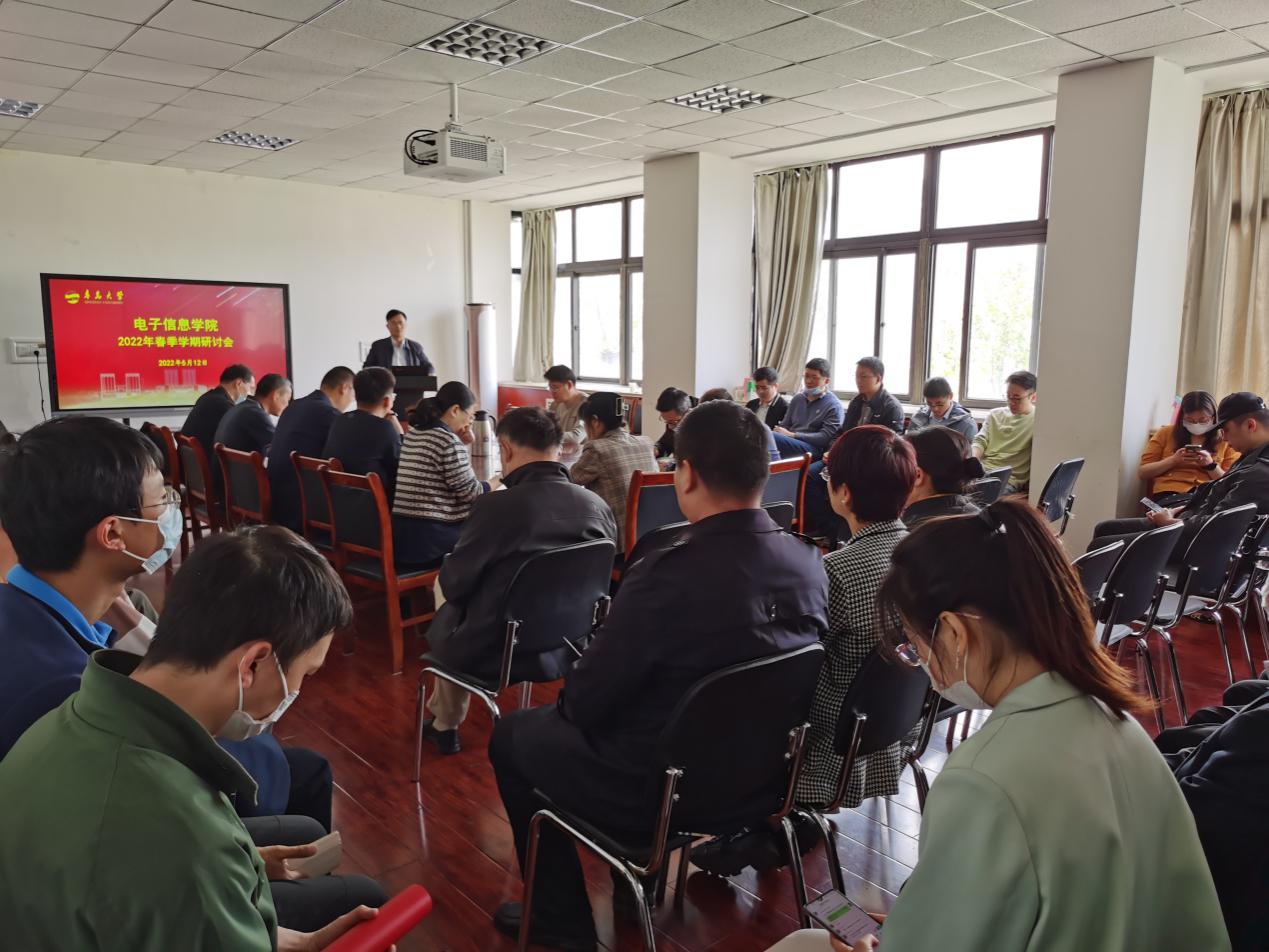 副院长宿杰作题为《凝心聚力 加快推进电子信息类专业建设》的报告。他提出,要优化教学绩效津贴分配办法,做好工程教育专业认证中期检查、年度进展等工作,做好国家一流专业建设点的持续建设,针对教材、课程、教改项目、教学竞赛等方面存在的问题制制定整改措施,加大教育教学投入力度,做到四个回归,全面提高本科培养质量。