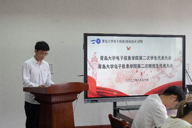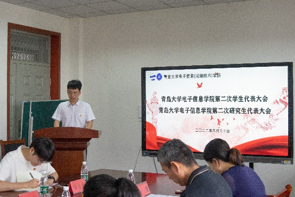 6月30日,Beat365中文官方网站第二次学生代表大会、第二次研究生代表大会于诚思楼407顺利举行。院党委副书记刘孝群、院团委负责人赵晓辉、全体辅导员及全体学生代表出席大会开幕式。本次大会由陈欣荣主持。