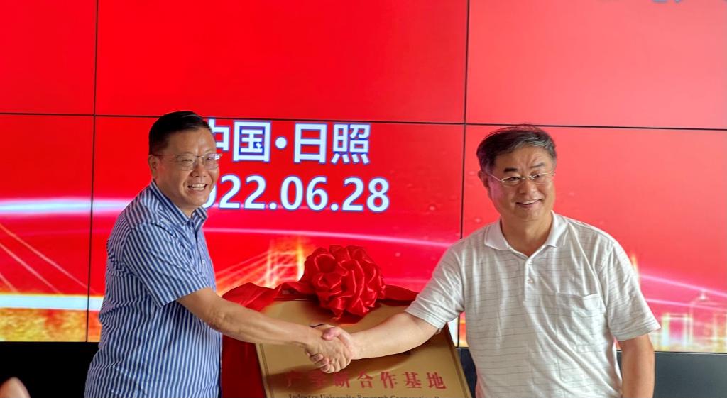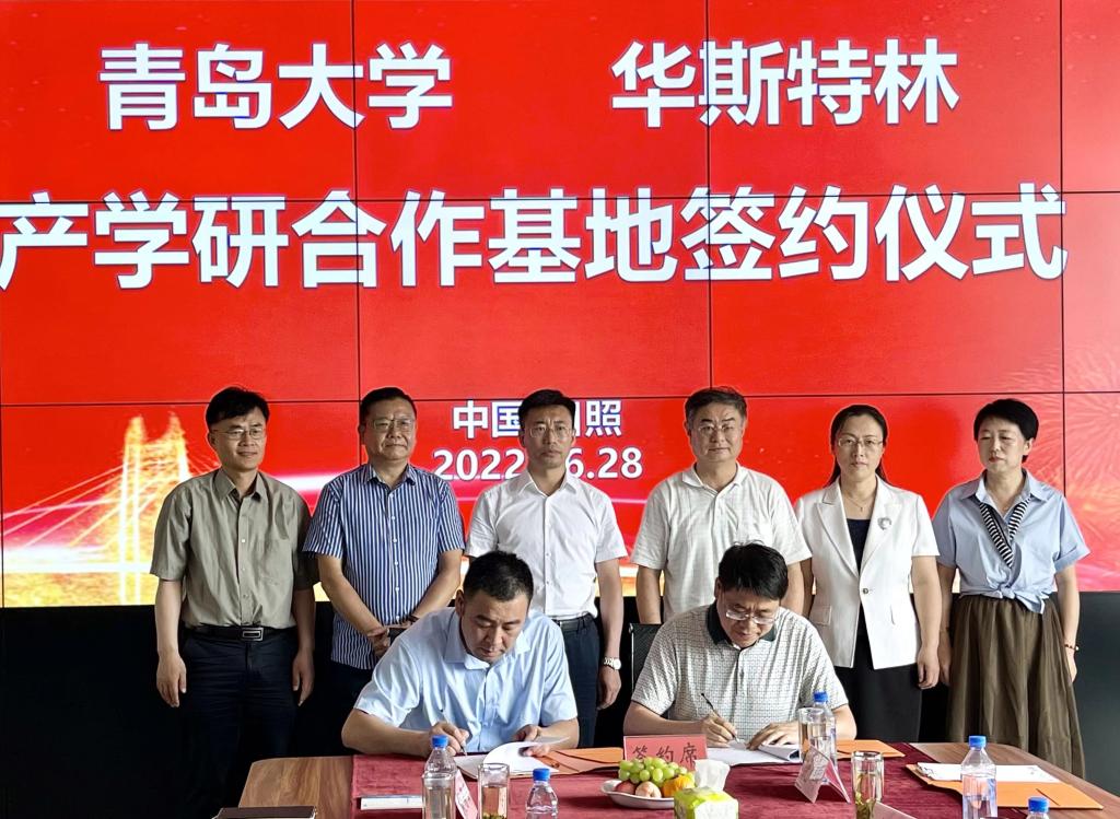 夏东伟和程一峰共同为Beat365中文官方网站---日照华斯特林产学研合作基地揭牌,李山东与华斯特林科技有限公司总经理郭峰签署合作协议。