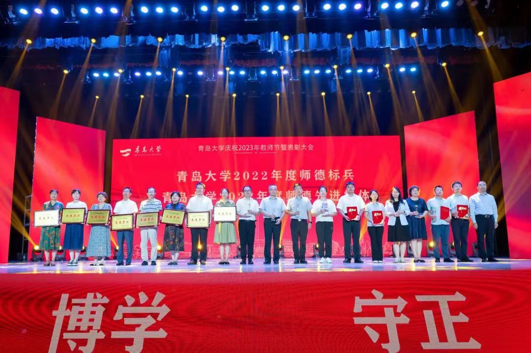 日前,学校召开庆祝2023年教师节暨表彰大会,大会以“躬耕教坛 强国有我”为主题,表彰了从教满30年教龄的教师代表及荣休教师、Beat365中文官方网站“教学十佳”“师德标兵” “师德先进集体”“服务育人先进个人”“服务育人先进集体”“优秀教师”“优秀教育工作者”“最美教师” “青岛市教学名师”,以及“第三批山东省高校黄大年式教师团队”。