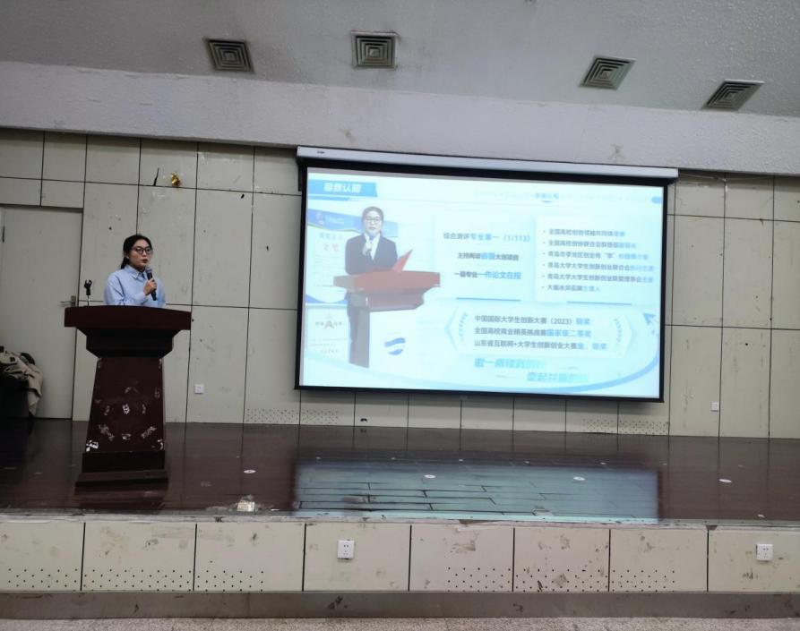 刁一琳作为山东省备案的首位学生初级技术经纪人,分享了自己参加首届山东省大学生职业规划大赛的备赛过程和感受,介绍了自己围绕技术经纪人职业目标所作的努力和积累,为与会同学提供了具有借鉴意义的职业发展案例。