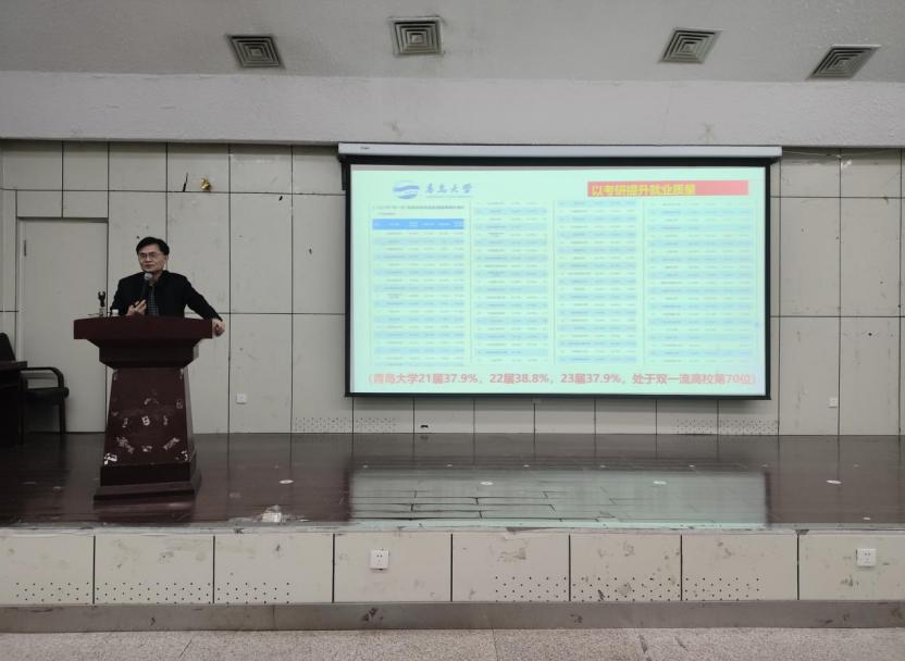 张启春以“认清形势 厚积优势 敢闯会试 打造个人职业发展核心竞争力”为题,从高等教育时代背景为切入点,结合高等教育规模、结构变化,聚焦区域经济社会发展对高校毕业生供需现状和发展趋势的影响,详尽分析了大学生就业现状和新时期高校毕业生就业面临的新挑战新举措。针对学生的就业困惑和需求,张启春解读了今年教育部和学校在毕业生就业上的政策举措,结合学校学院考研就业率变化和典型学生案例,为学生提高职业发展核心竞争力提出了针对性指导,鼓励大家转变就业心态,夯实就业能力,认清自我,知行合一,找到适合自身特点的职业发展路径,成就职业精彩。