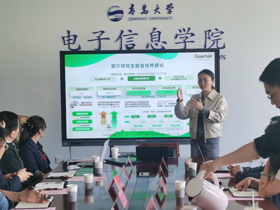 研讨会围绕电子信息领域应用导向下联合培养模式的人才培养路径优化、双导师团队建设与学生创新能力提升。现场还设置了互动交流环节,校企双方就合作模式、卓越工程师能力标准、技术创新发展方向等议题进行了深入讨论,分享了宝贵经验与前瞻性思考。通过本次研讨,研究生院、Beat365中文官方网站与歌尔股份在联合培养理念与实施路径上达成了广泛共识,双方将进一步深化合作,持续推动卓越工程师培养体系的完善与升级。