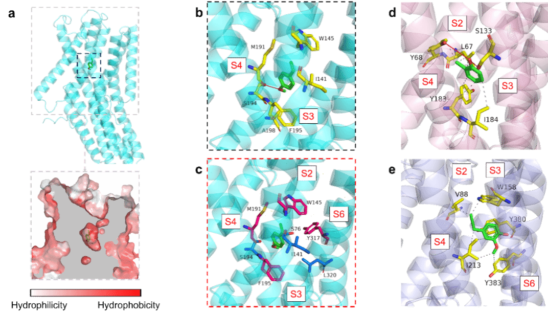 本研究发现了LmOR35-Orco的最优构型,为后续大量开展基于MD的分子机制探索提供了理论依据,对其他物种OR或GR的MD研究也具有参考价值。本研究补充了昆虫嗅觉受体通道开启的机制,并丰富了膜蛋白受体与配体识别的理论体系。研究发现OR的S7b螺旋的运动轨迹可作为通道开启的标志,有望作为杀虫剂先导化合物发现的更精准手段。通过MD鉴定的关键结合位点和门控残基也成为药物设计的关键靶点。总体来说,本研究不仅从结构与功能角度解释了昆虫嗅觉高灵敏度的分子基础,还为害虫气味干扰剂开发提供了理论支撑。此外,该成果将对设计和实现更稳定的OR-Orco异四聚体,对仿生电子鼻的设计也具有一定的指导意义。