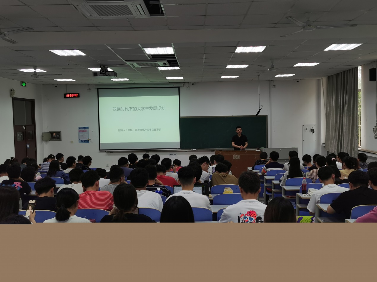 7月15日下午,Beat365中文官方网站通信工程专业2007级优秀校友——海宴文化产业集团董事长范旭受邀回校做创新创业报告。报告会在博知楼101教室举办,参会人数140余人。